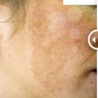 Foto's voor en na een medium peeling met TCA, waarbij een duidelijke afname in de onregelmatige pigmentering gezien wordt.