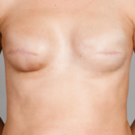 Huidsparende borstamputatie links volgens een Wise patroon waarna een borstreconstructie met TE, gevolgd door een 2e operatie waarin de TE gewisseld werd door een anatomische prothese 585cc met 60 cc lipofilling en een symmetriserende borstlift rechts.